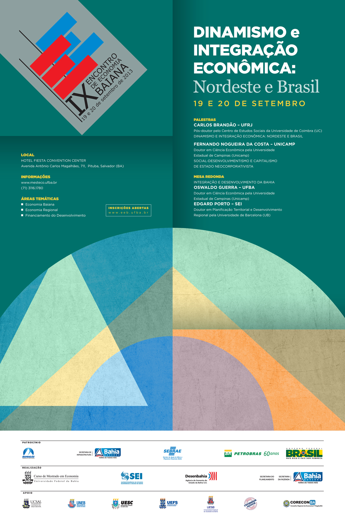 O IX Encontro de Economia baiana coloca em pauta o Dinamismo e a Integração Econômica da região Nordeste no Brasil. Este ano, a comissão organizadora do evento faz um convite à reflexão sobre as perspectivas e possibilidades de se alcançar um novo patamar de desenvolvimento para o Nordeste, com maior crescimento econômico e melhoria na geração de emprego e renda para os diferentes estados.