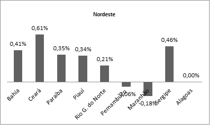 - Nordeste (+17.565 postos ou +0,27%) – resultado oriundo do aumento do emprego em sete EFs, com recordes para: a Bahia (+7.420 postos), Ceará, Paraíba, Piauí e Rio Grande do Norte.